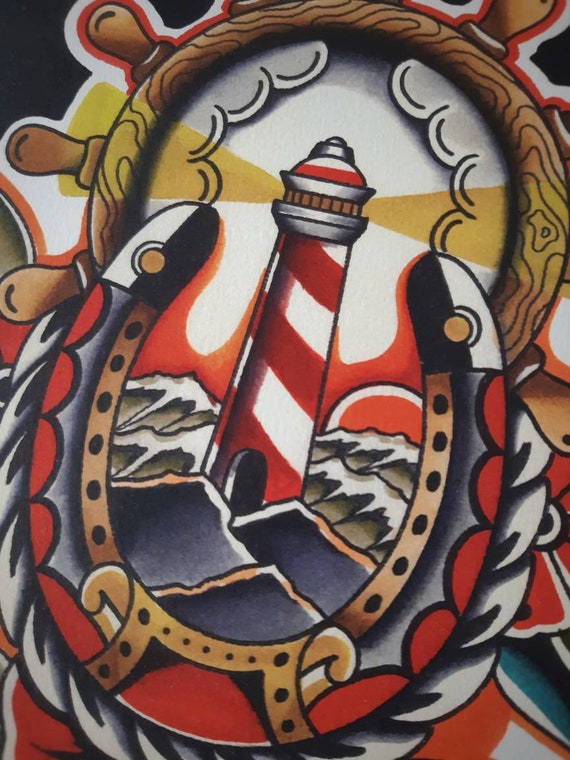 Traditional Lighthouse Tattoo Flash Flash Painting Tattoo Etsy Australia